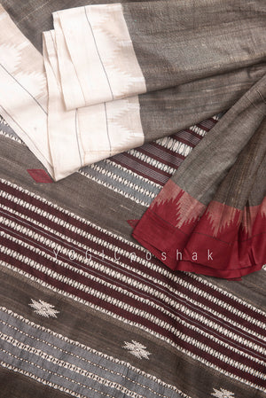 Kotpad handloom cotton saree | Ganga Yamuna border | Natural dyed | Grey