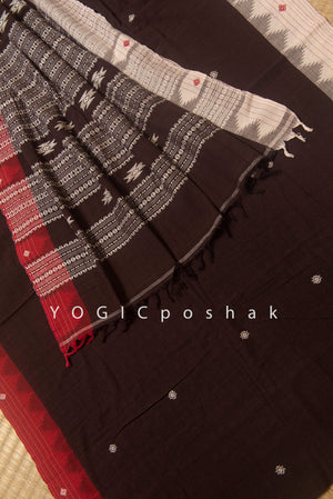 Kotpad handloom cotton saree | natural dyed | Black, red border