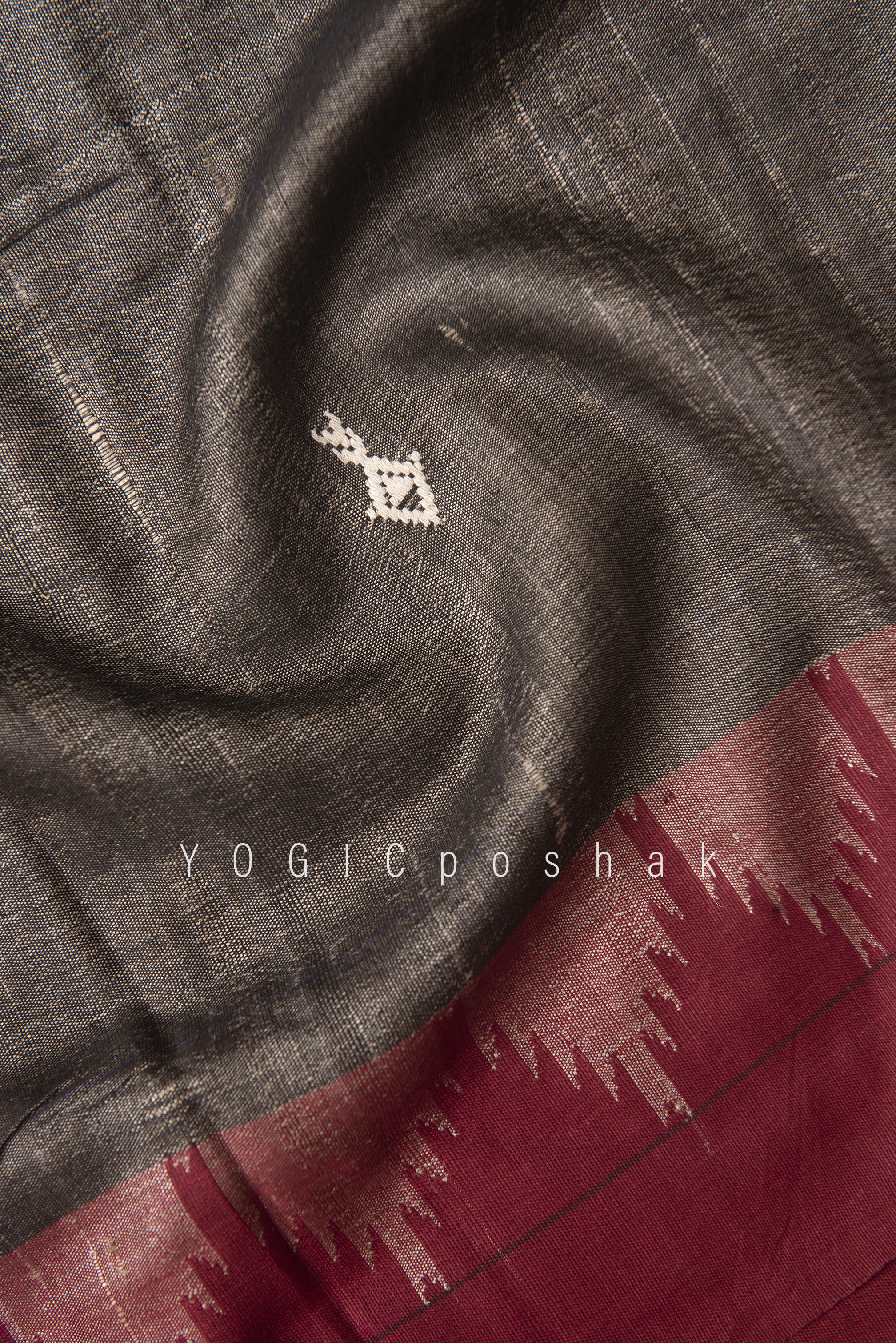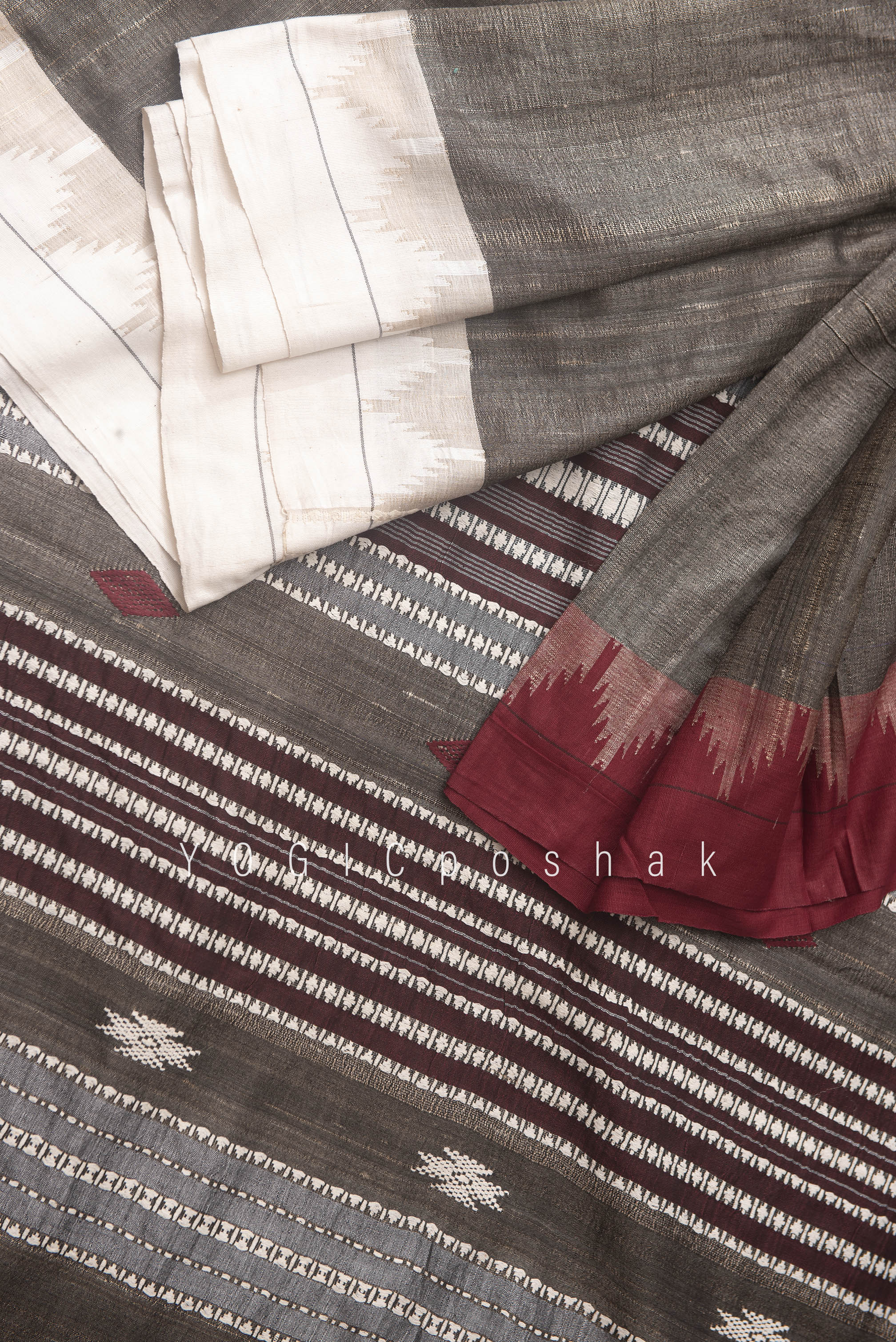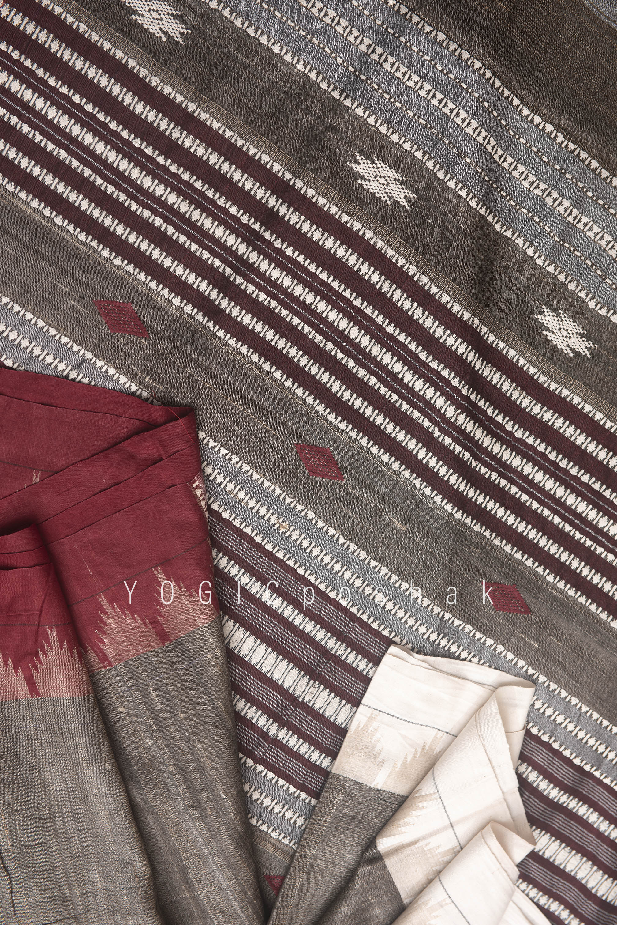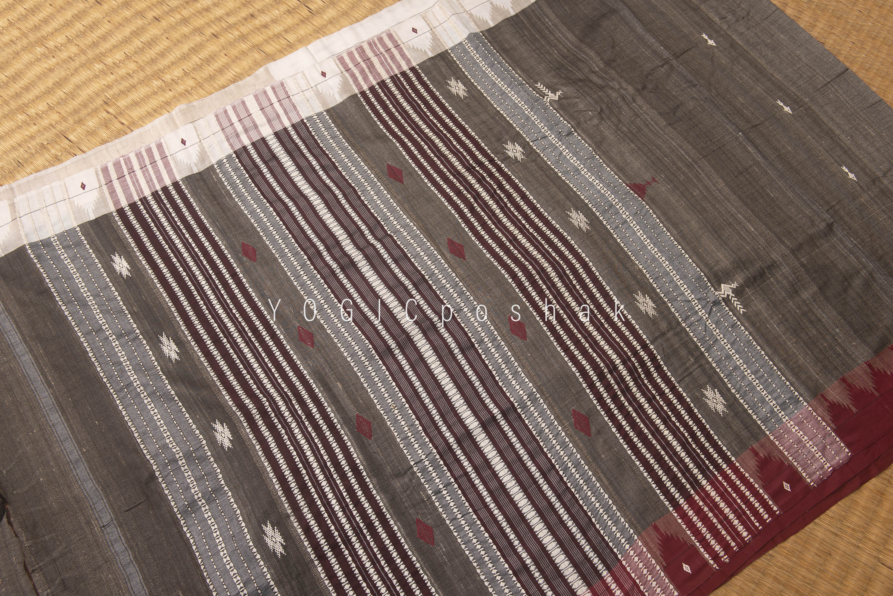 Kotpad handloom cotton saree | Ganga Yamuna border | Natural dyed | Grey