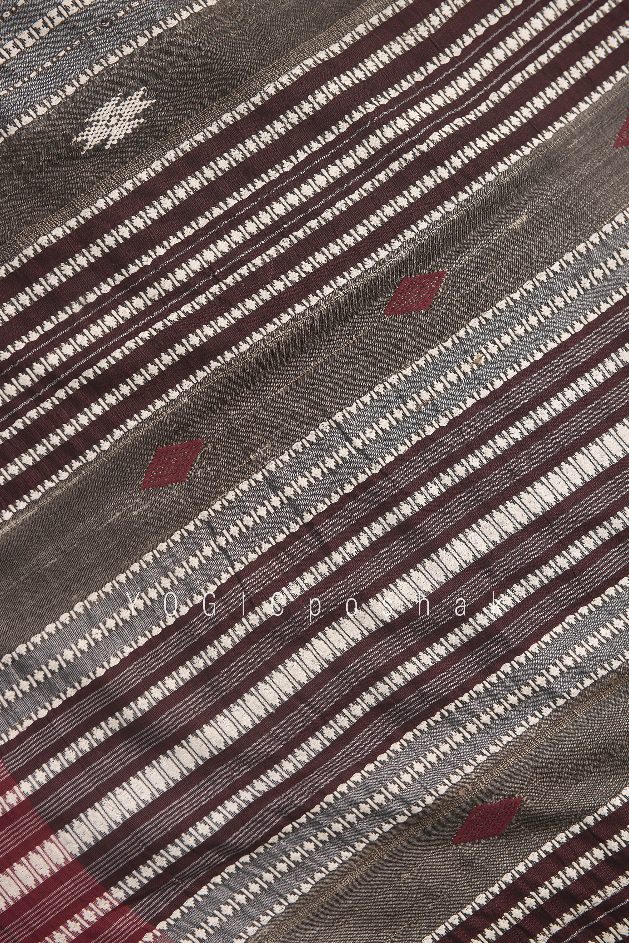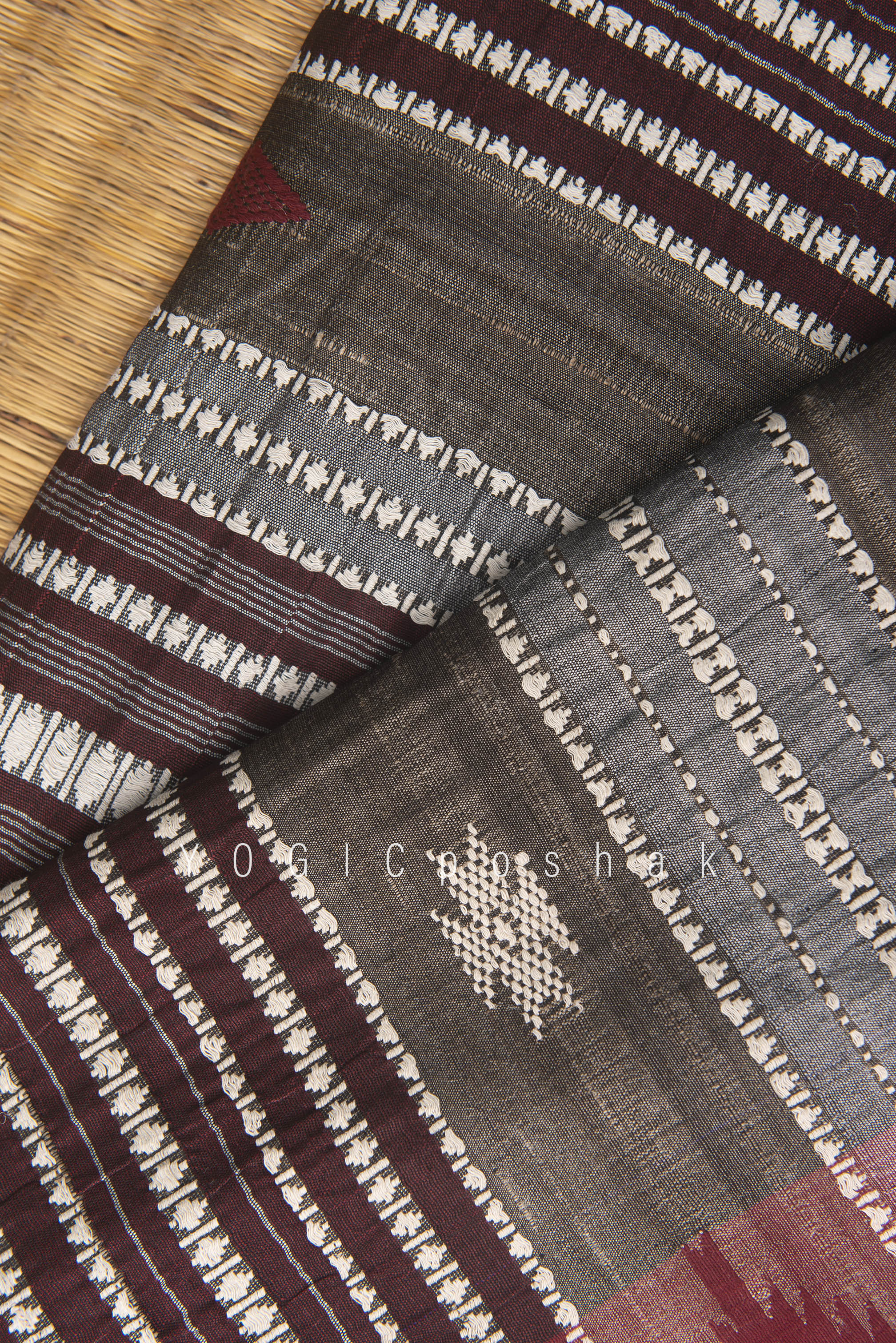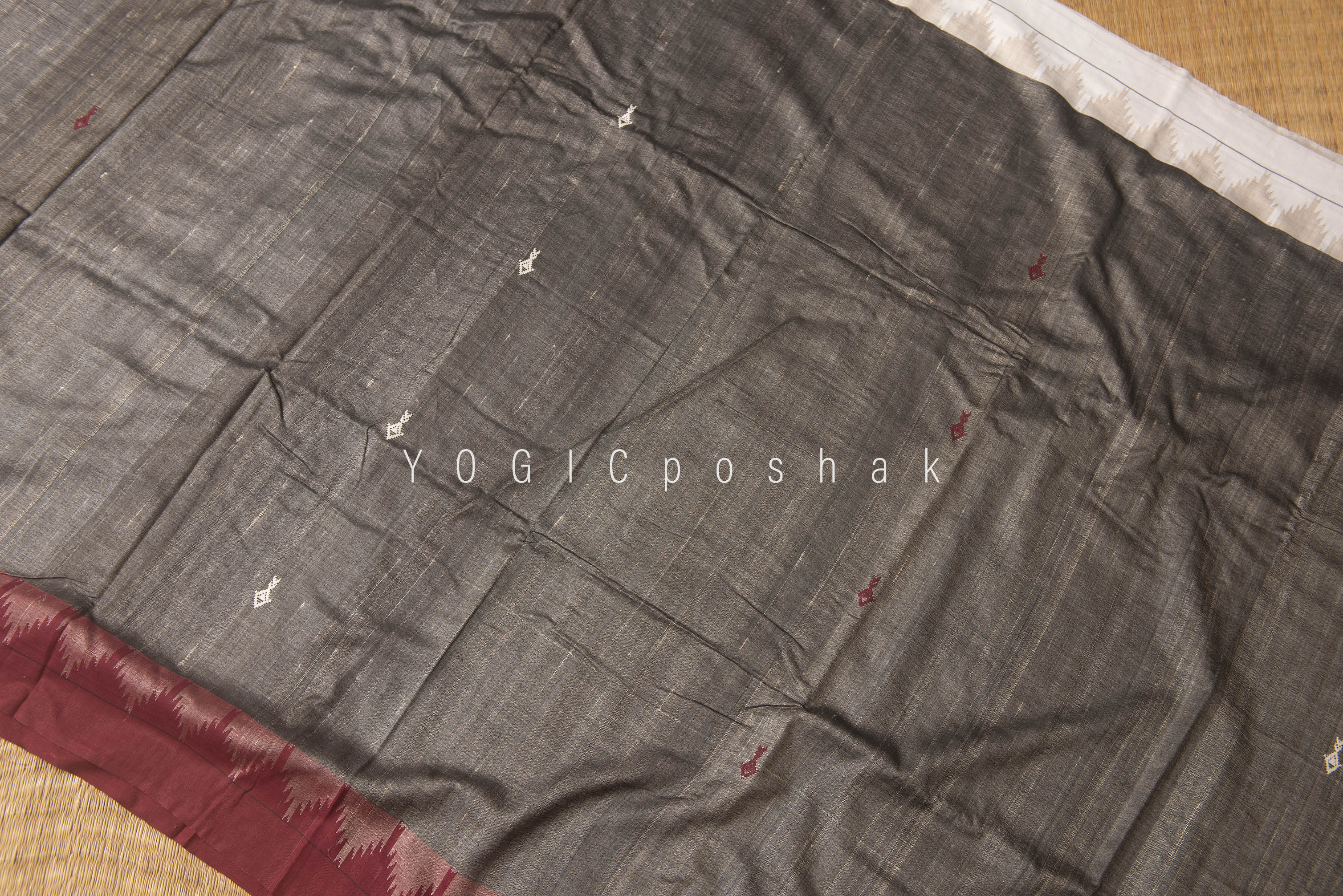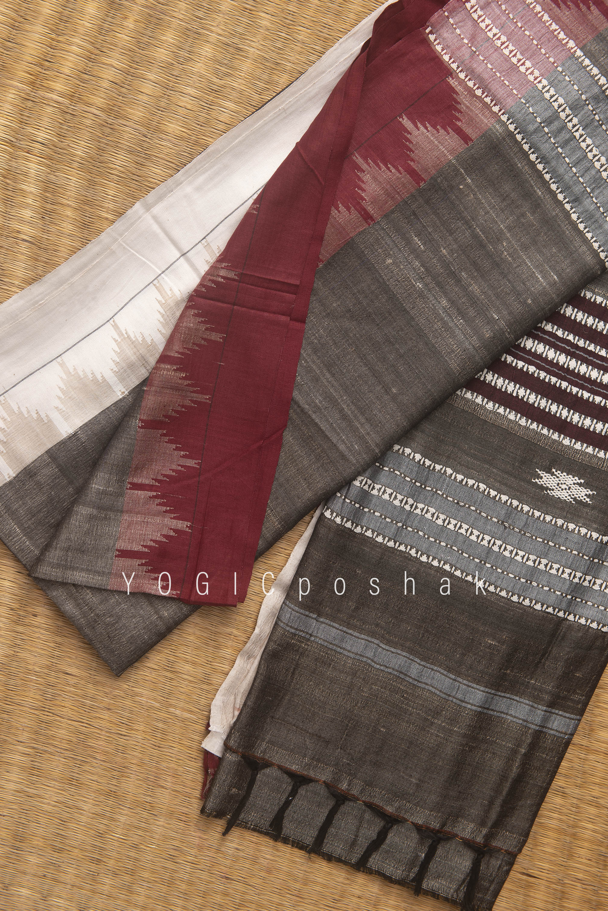 Kotpad handloom cotton saree | Ganga Yamuna border | Natural dyed | Grey