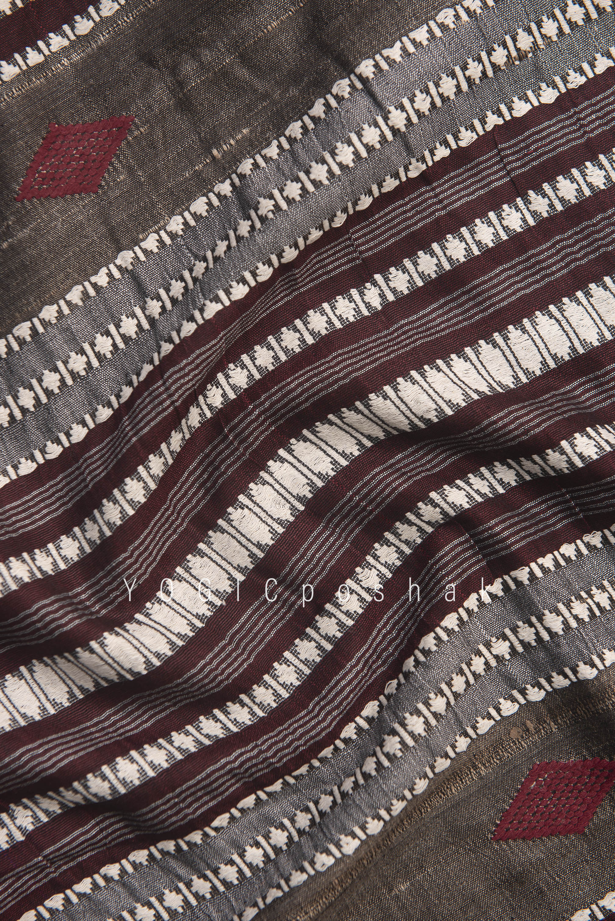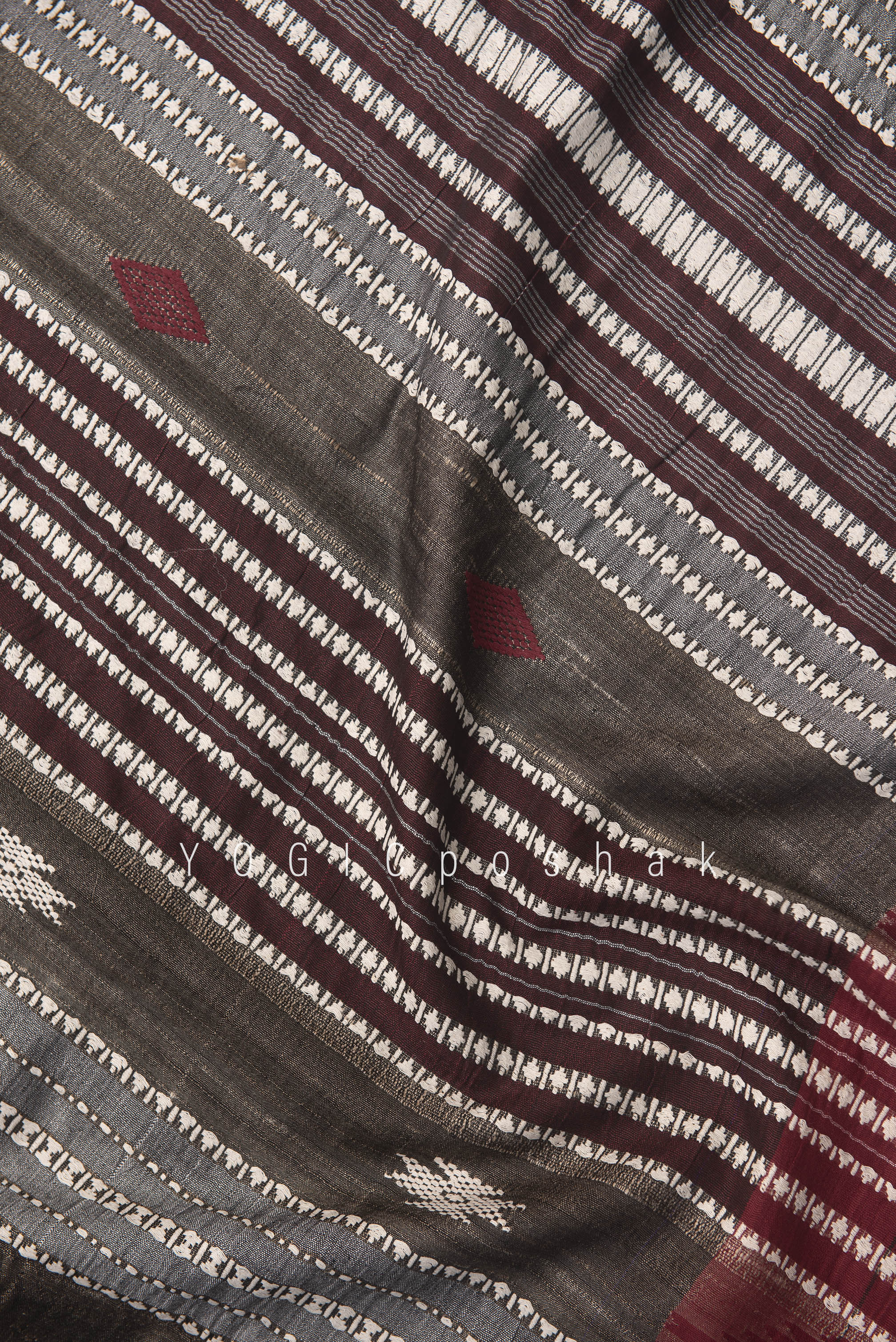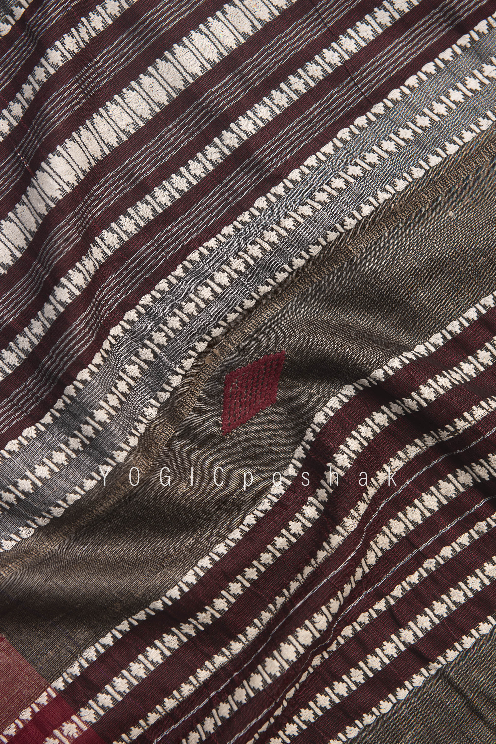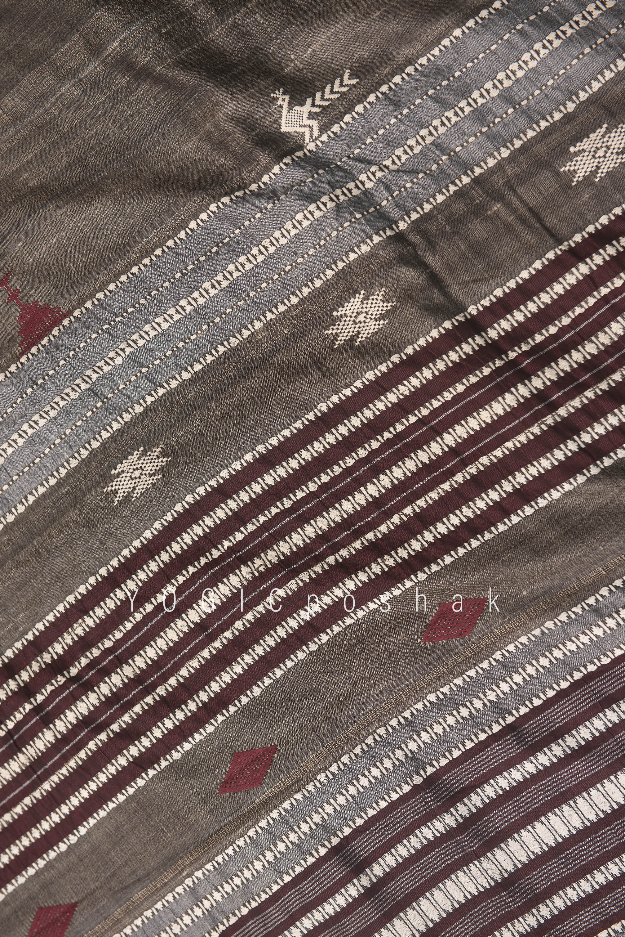 Kotpad handloom cotton saree | Ganga Yamuna border | Natural dyed | Grey