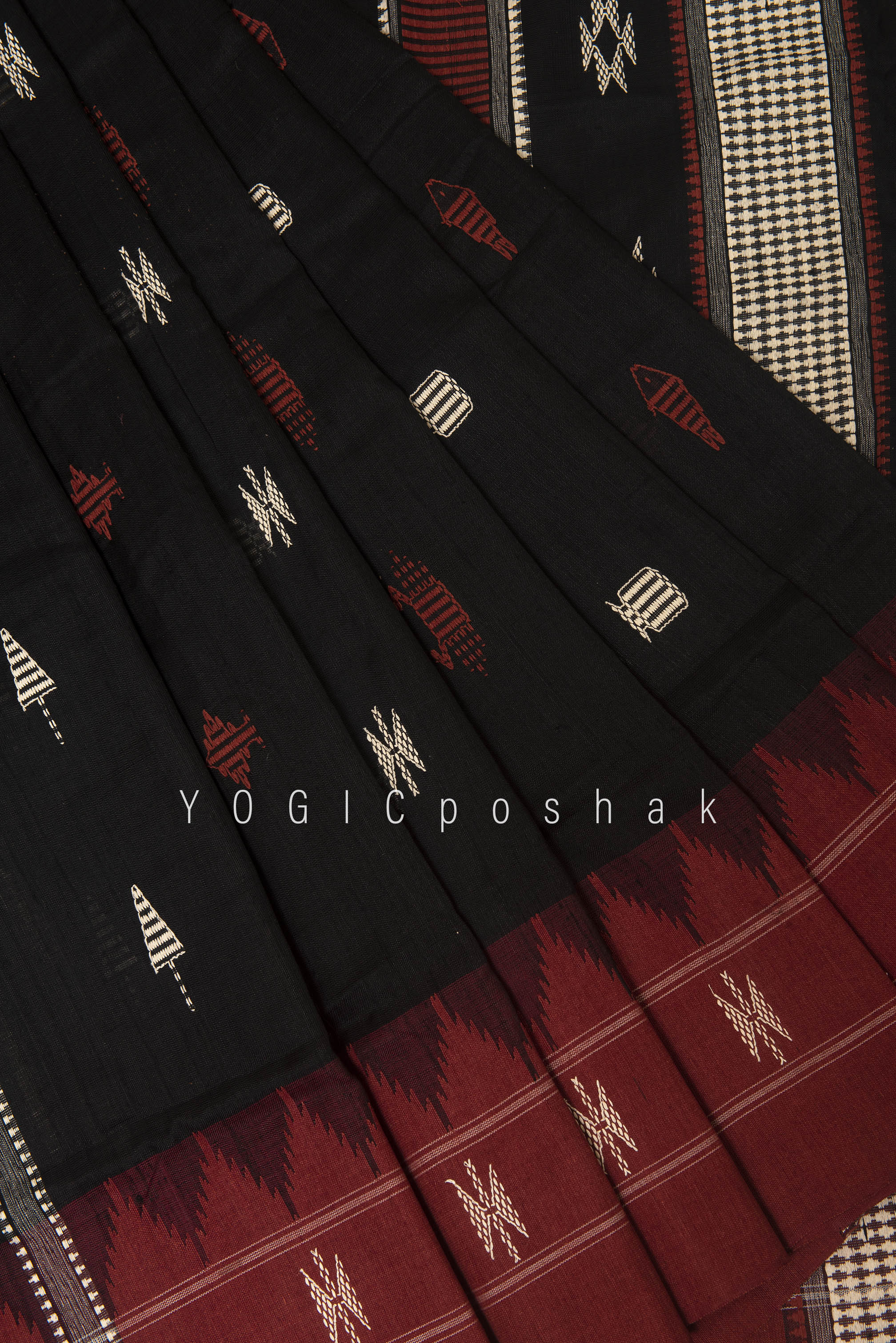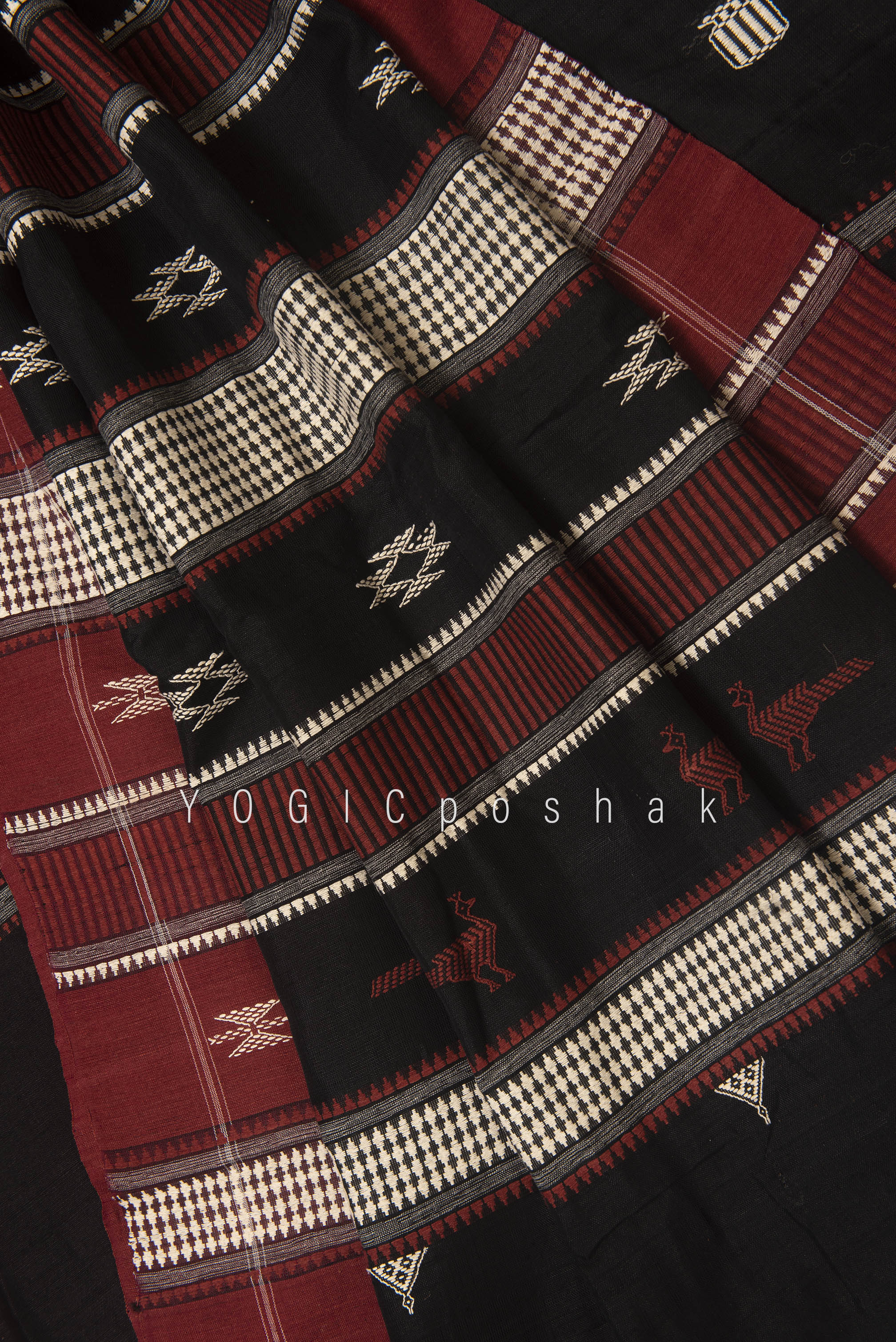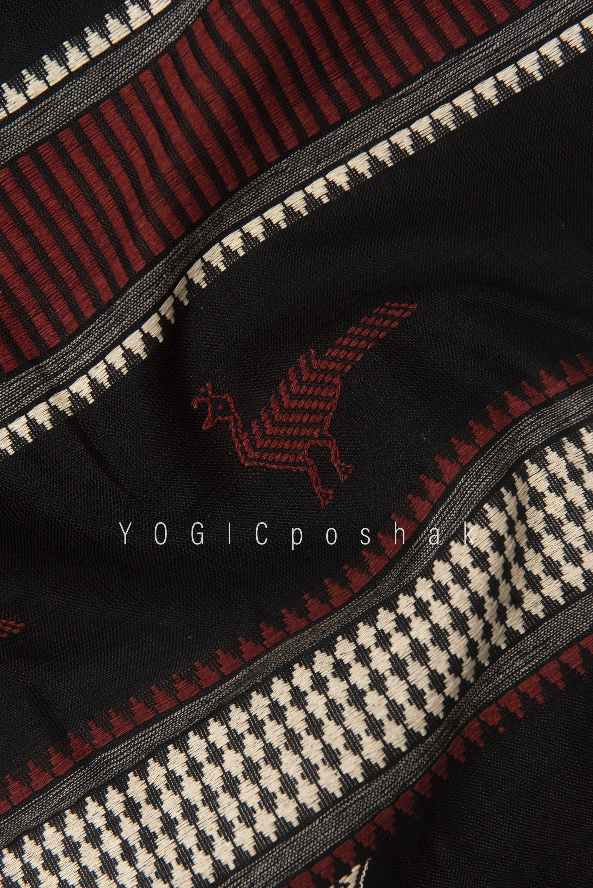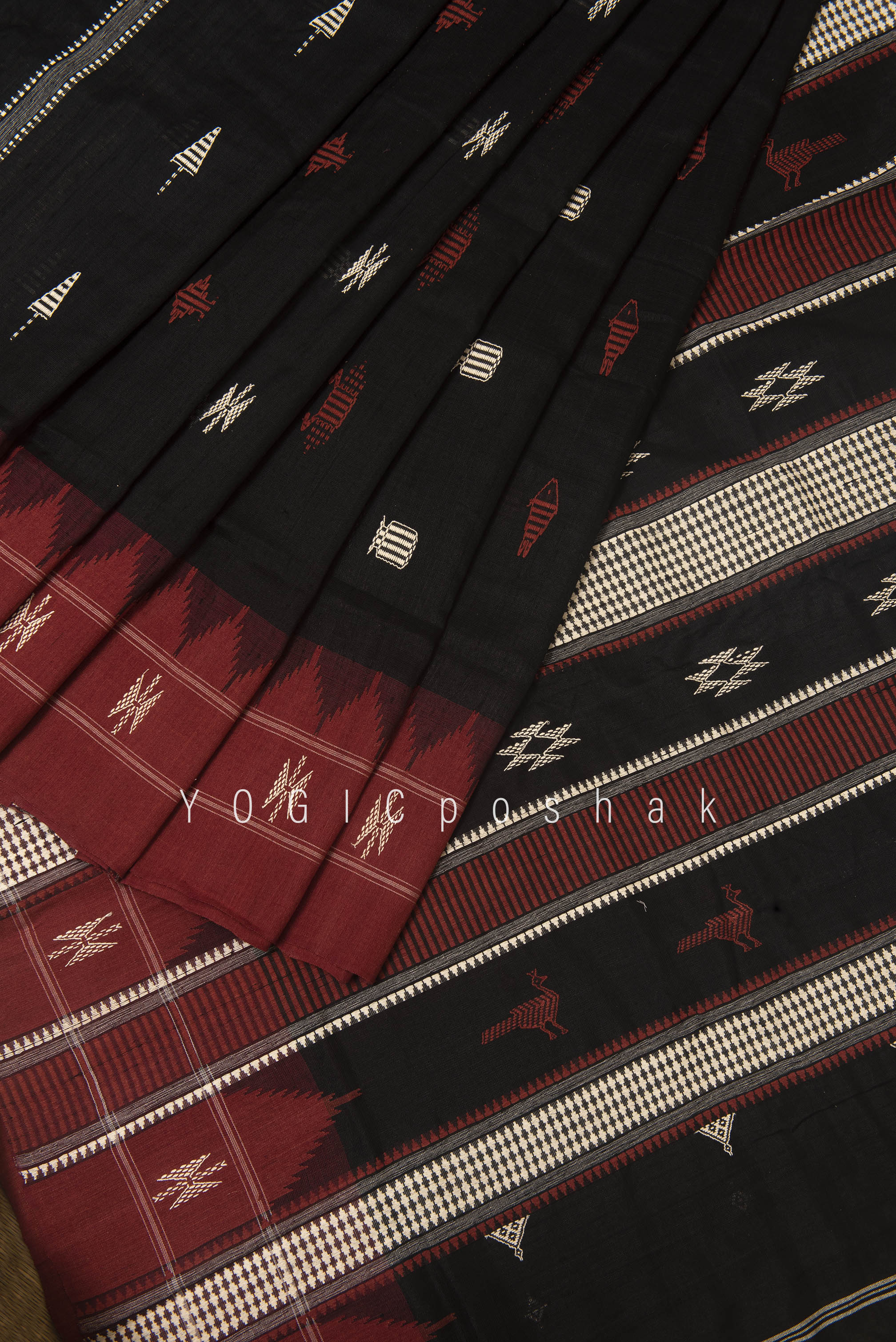 Kotpad handloom cotton saree | natural dyed | Black, red border
