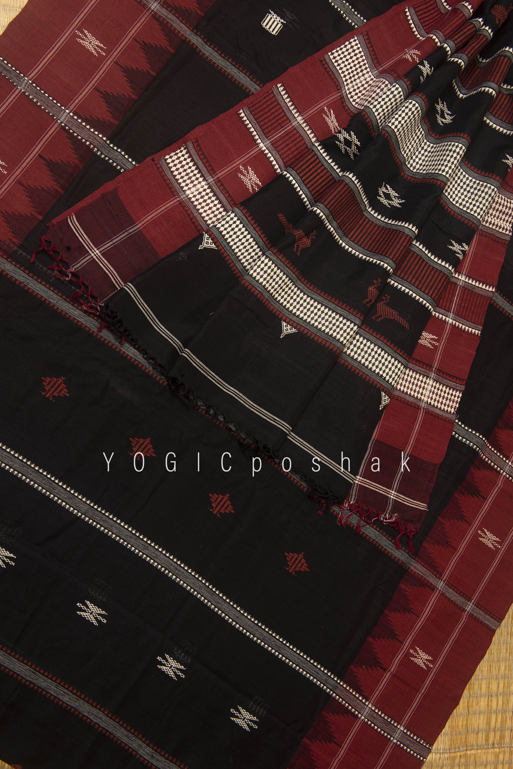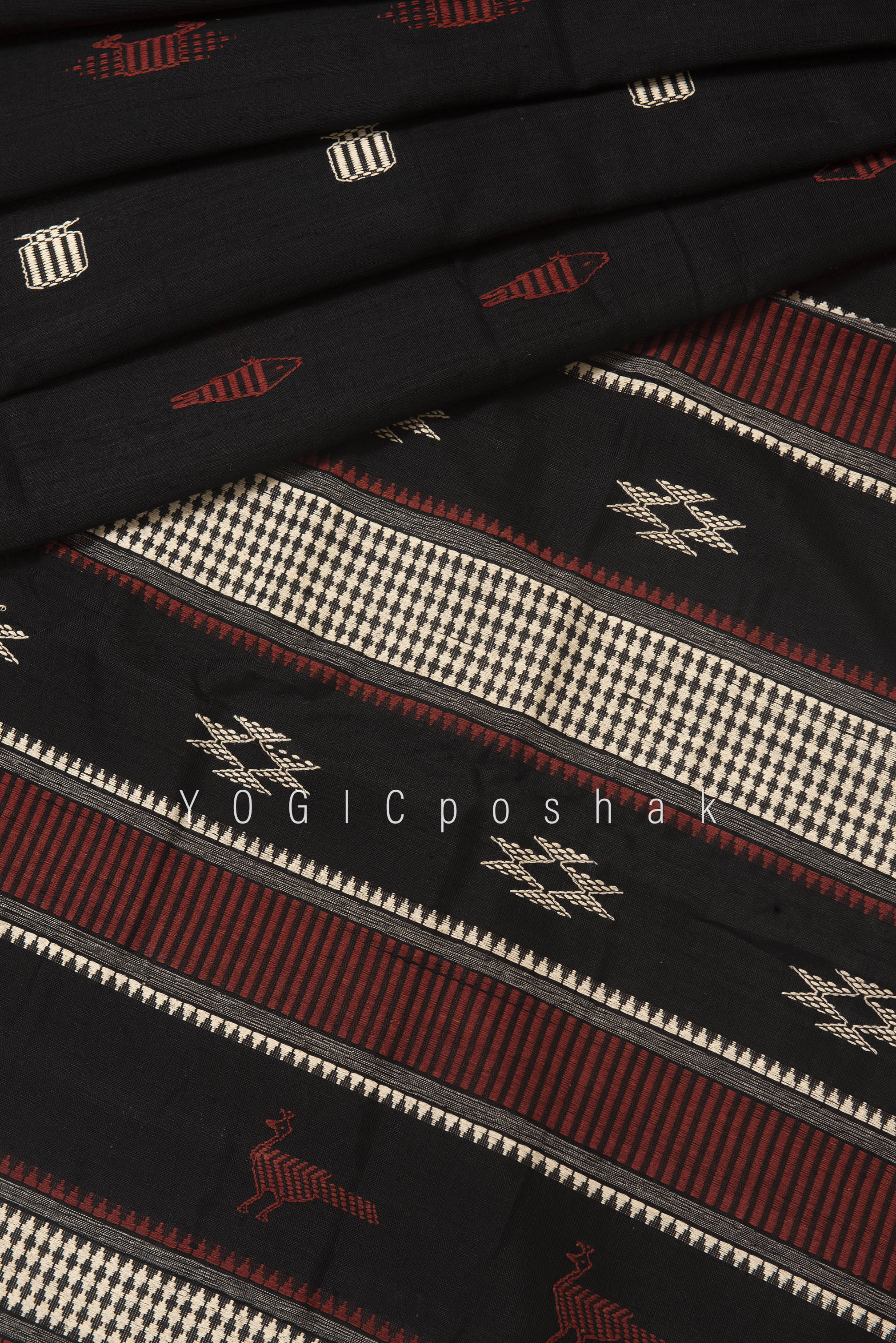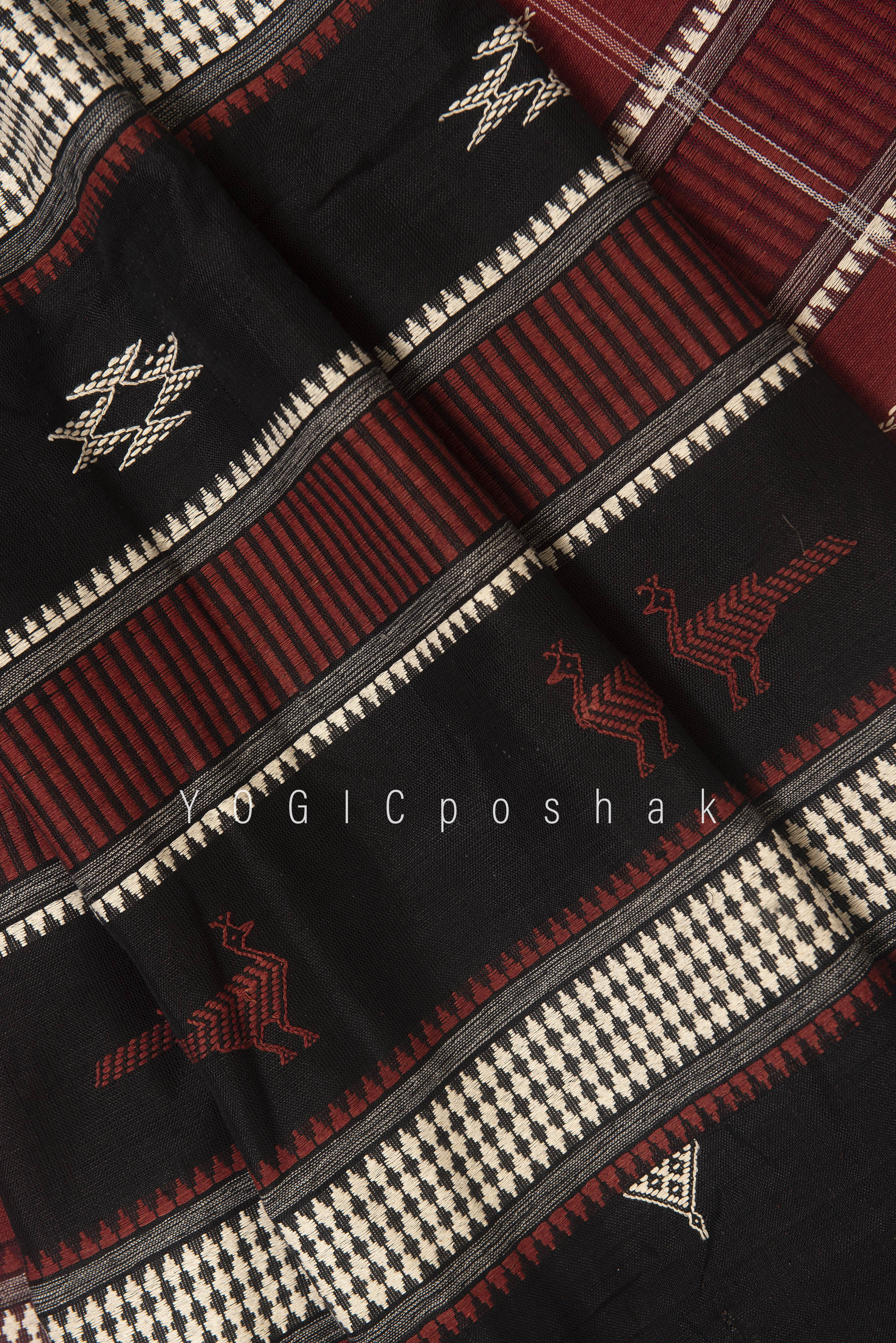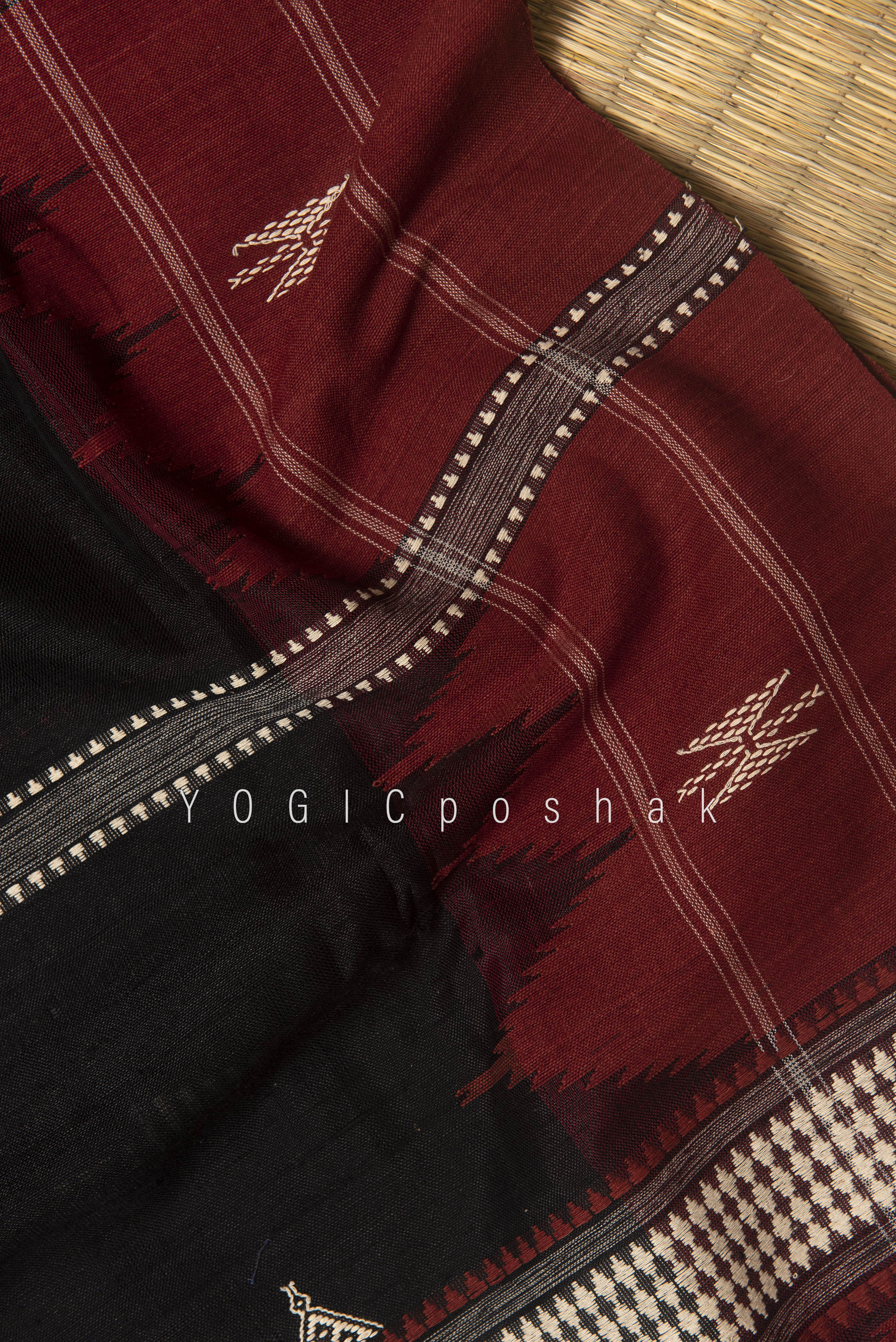 Kotpad handloom cotton saree | natural dyed | Black, red border