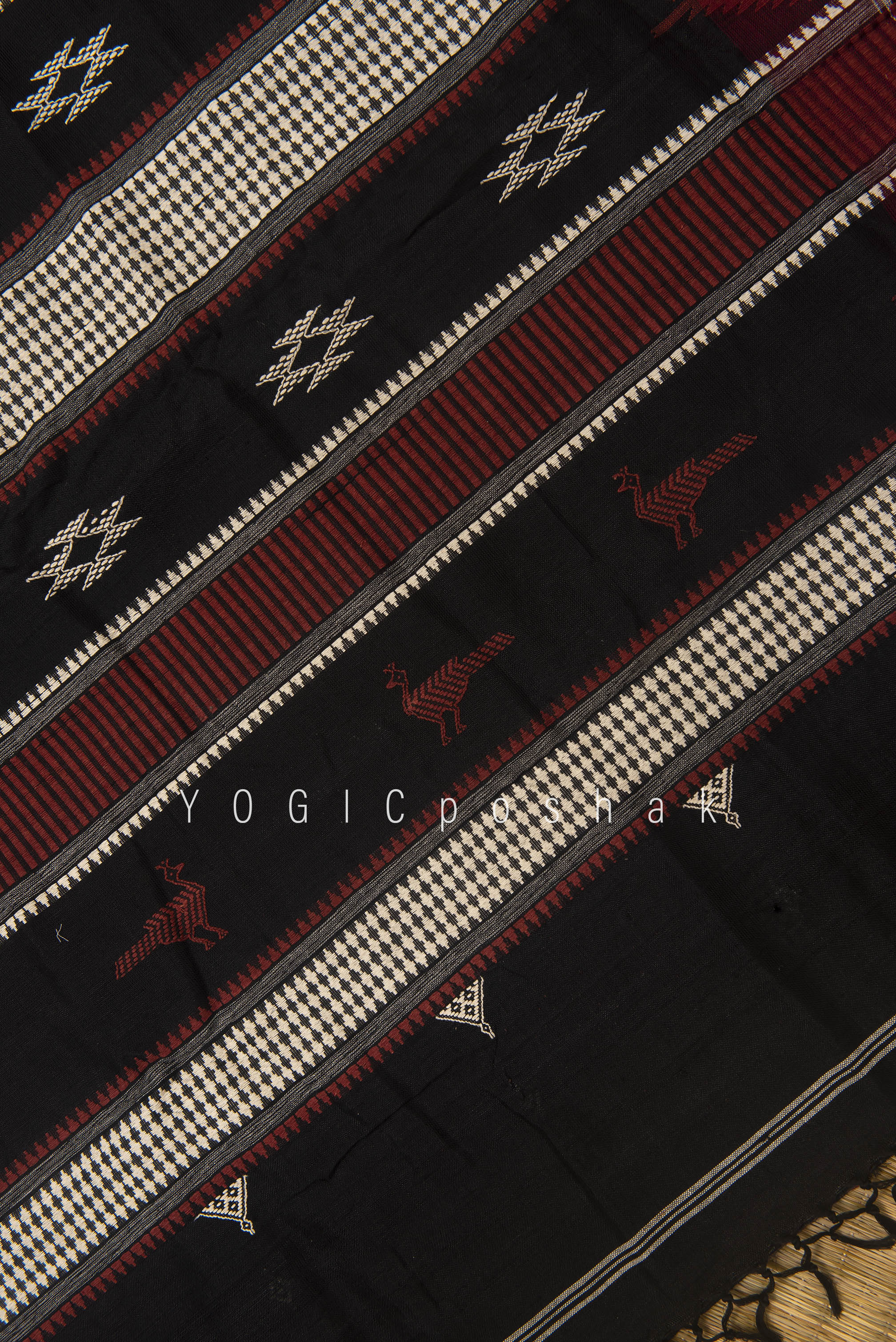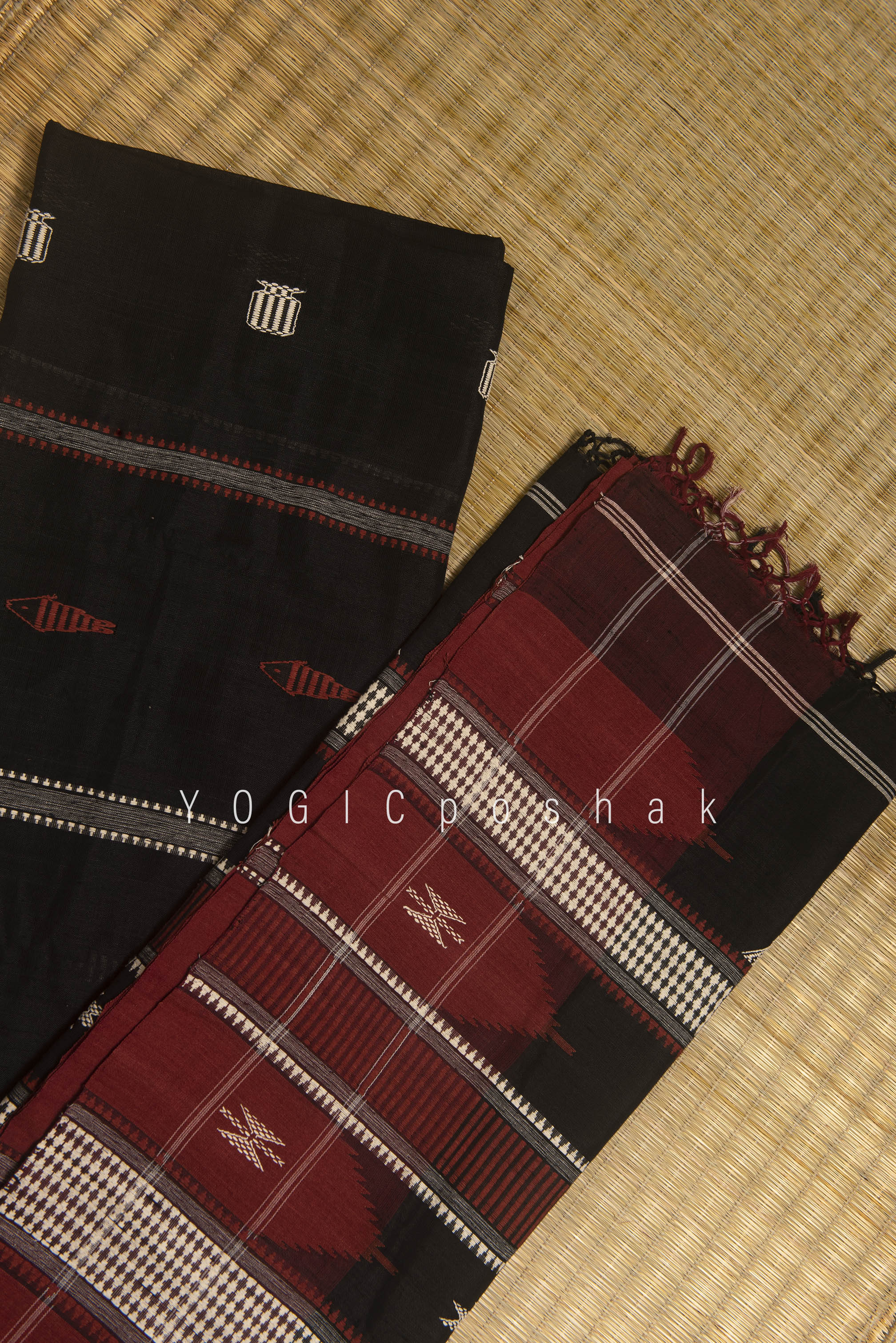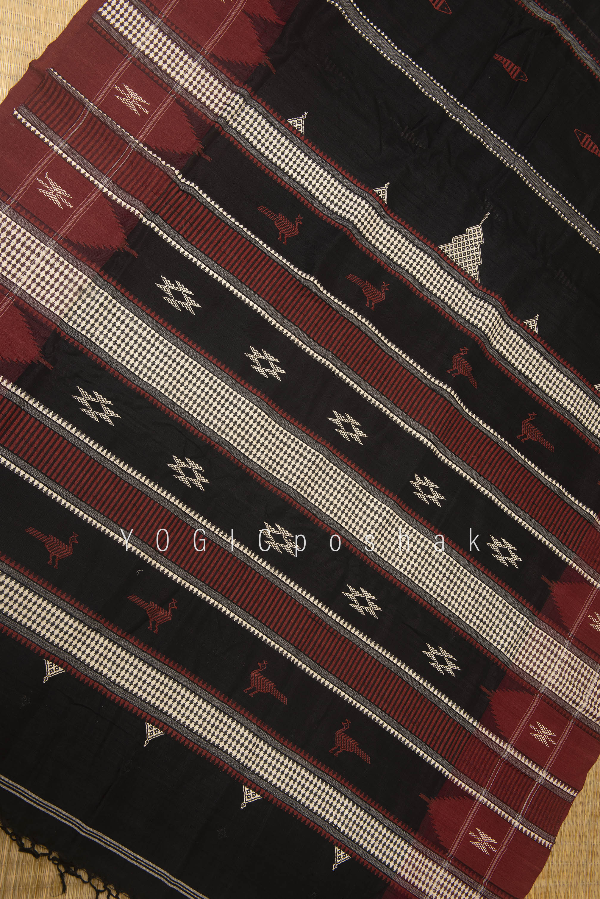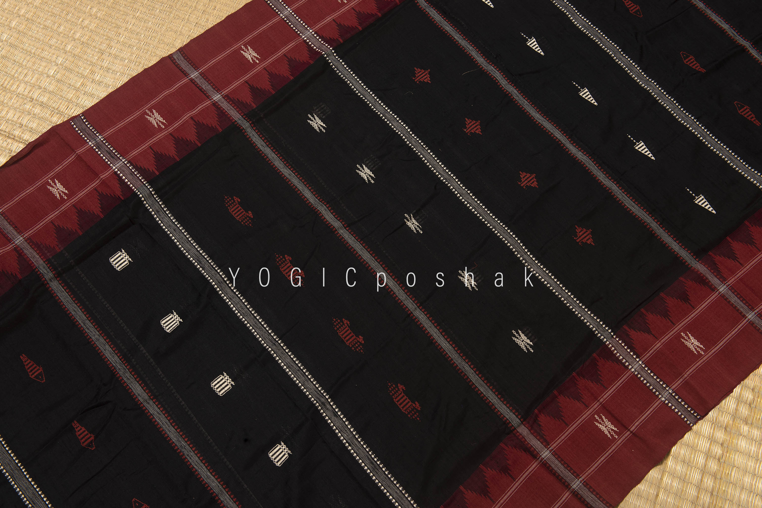 Kotpad handloom cotton saree | natural dyed | Black, red border