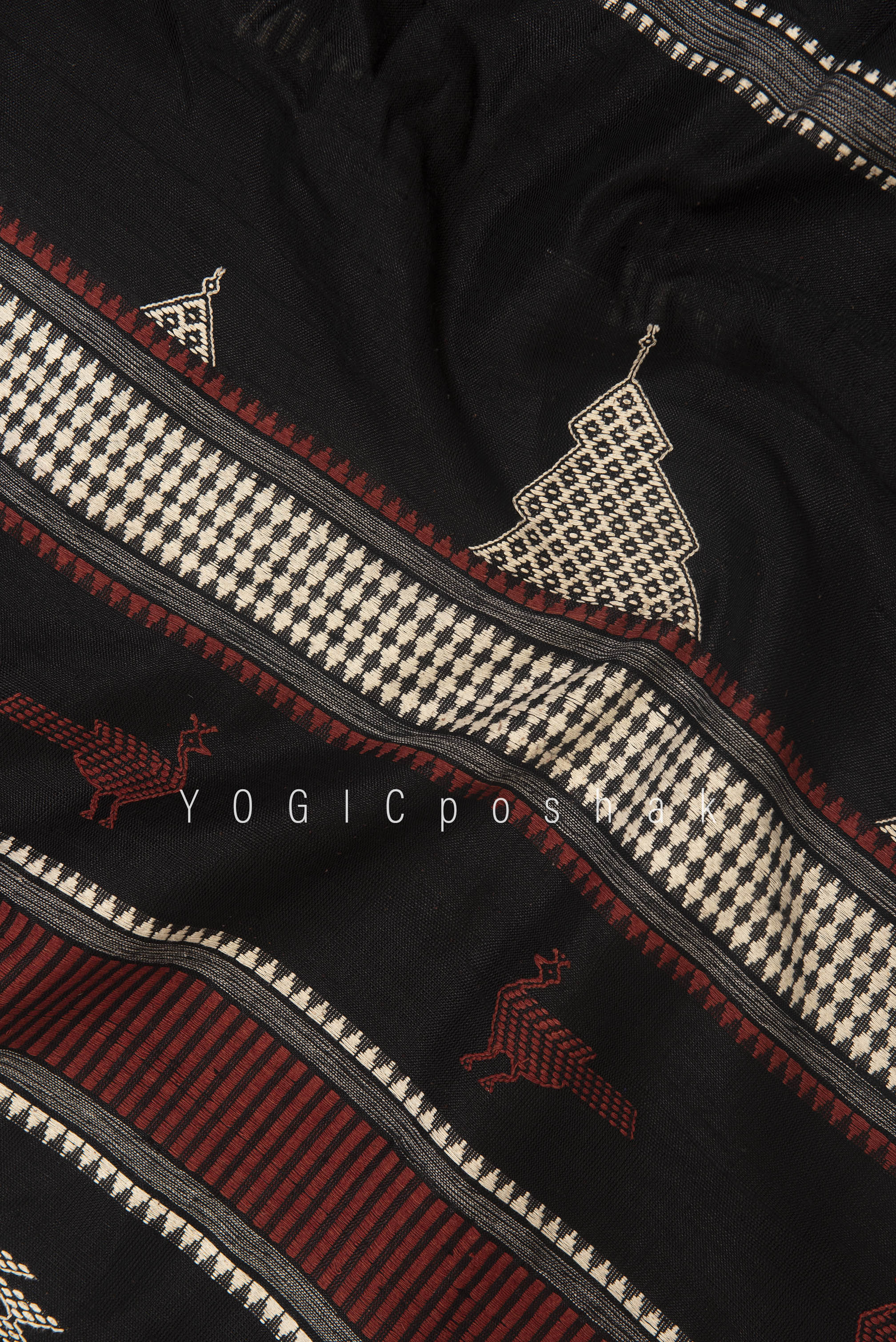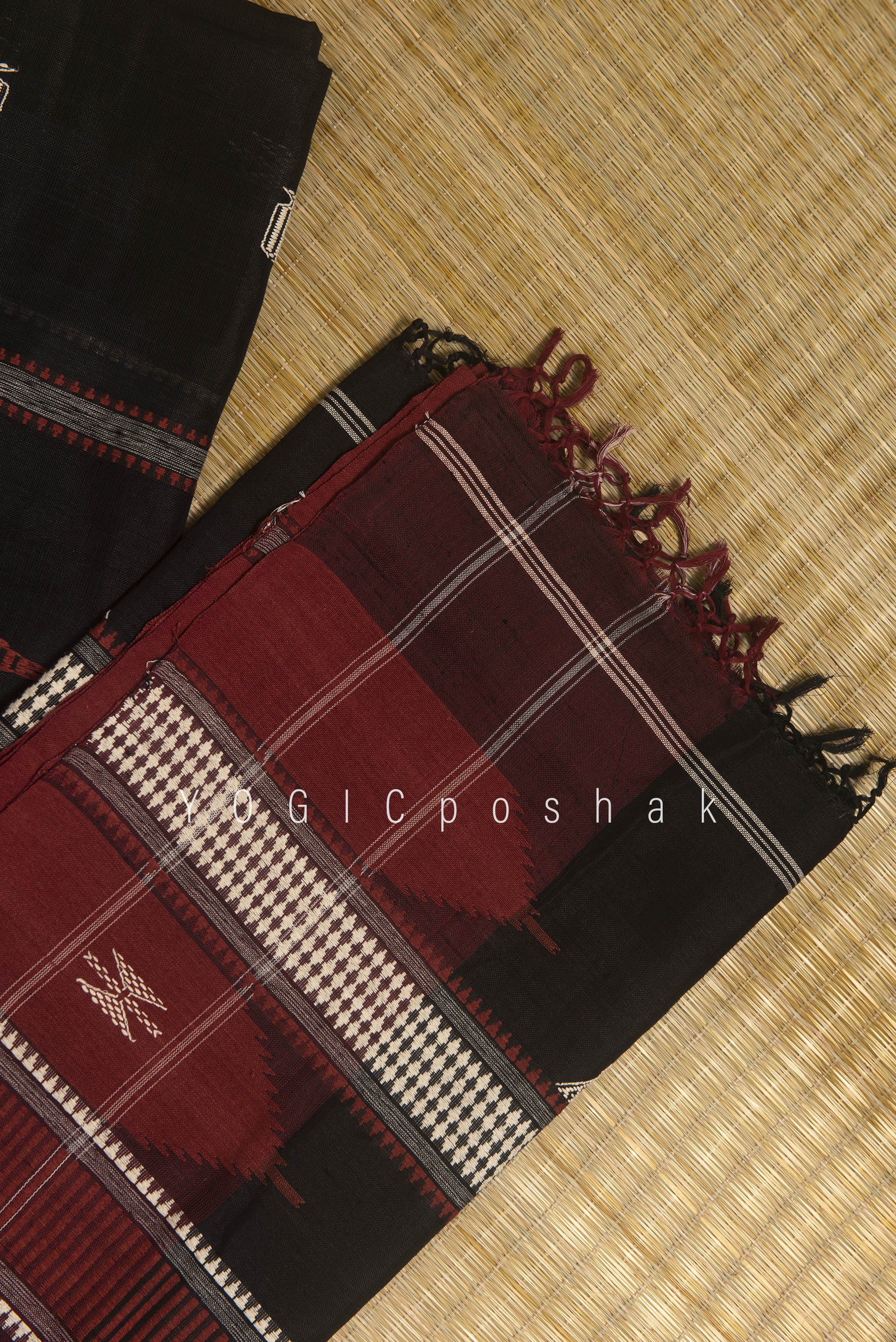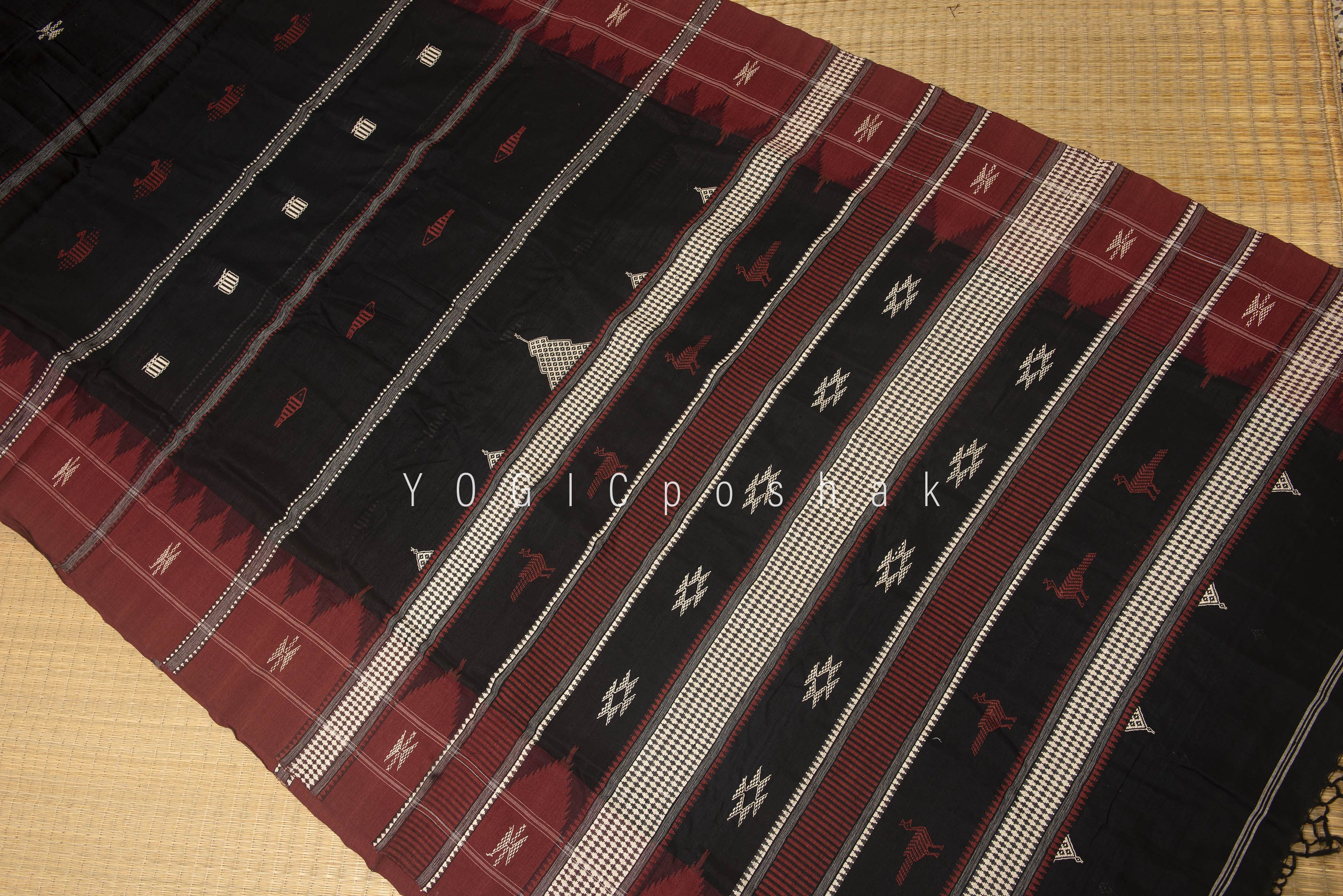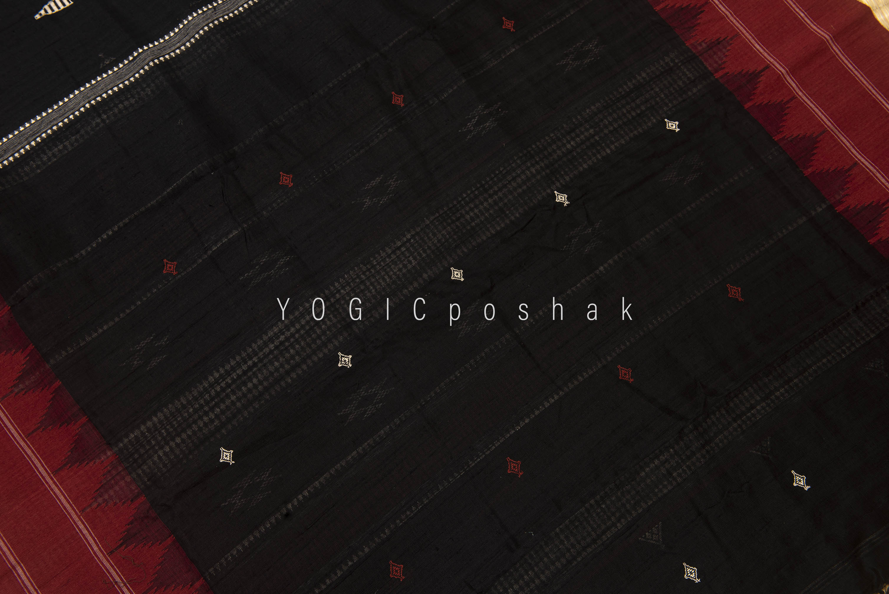 Kotpad handloom cotton saree | natural dyed | Black, red border